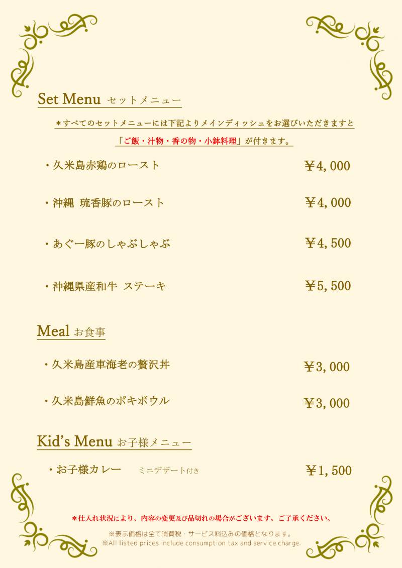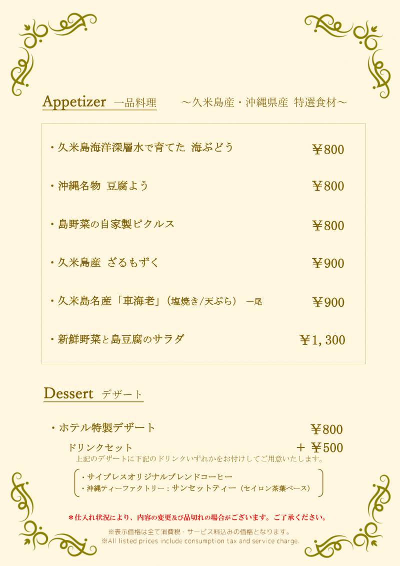久米島スローフードを和洋創作料理で味わってください